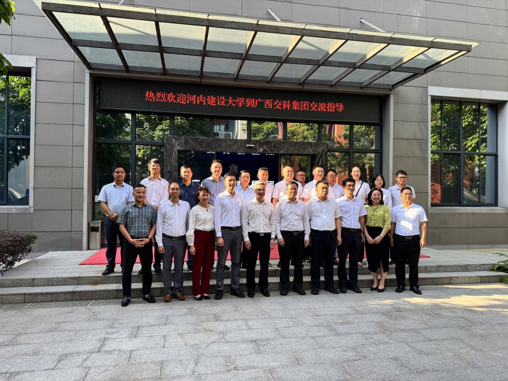 Tiếp nối chuyến công tác đến Trung Quốc của đoàn công tác Trường Đại học Xây dựng Hà Nội (ĐHXDHN) do PGS.TS Bùi Phú Doanh – Phó Hiệu trưởng dẫn đầu, Đoàn công tác đã tham quan các phòng thí nghiệm và trao đổi với Tập đoàn Khoa học Giao thông, đơn vị trực thuộc Công ty TNHH Tập đoàn Bắc Đầu, Quảng Tây, Trung Quốc. Tiếp đón đoàn có Ông Phùng Kiên – Bí thư Đảng ủy, Chủ tịch Hội đồng quản trị kiêm Tổng giám đốc; Ông Lưu Bân Thanh – Phó Tổng giám đốc; Ông Lê Lực Thao – Trưởng Phòng Khoa học và Thông tin cùng lãnh đạo của các phòng ban.
