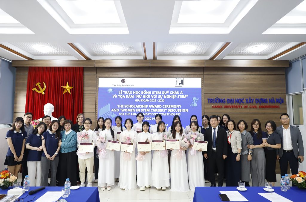 🎉On Friday, December 19, 2025, a series of activities took place at Hanoi University of Civil Engineering: the Asia Foundation STEM Scholarship Award Ceremony, a seminar on “Women in STEM Careers,” and a soft skills training program for female scholarship recipients.